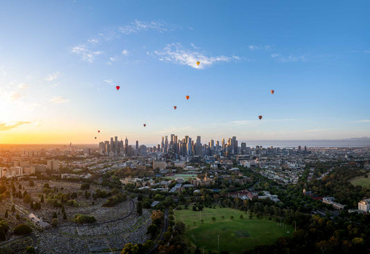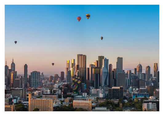 Melbourne Skyline featuring Hot Air Balloons